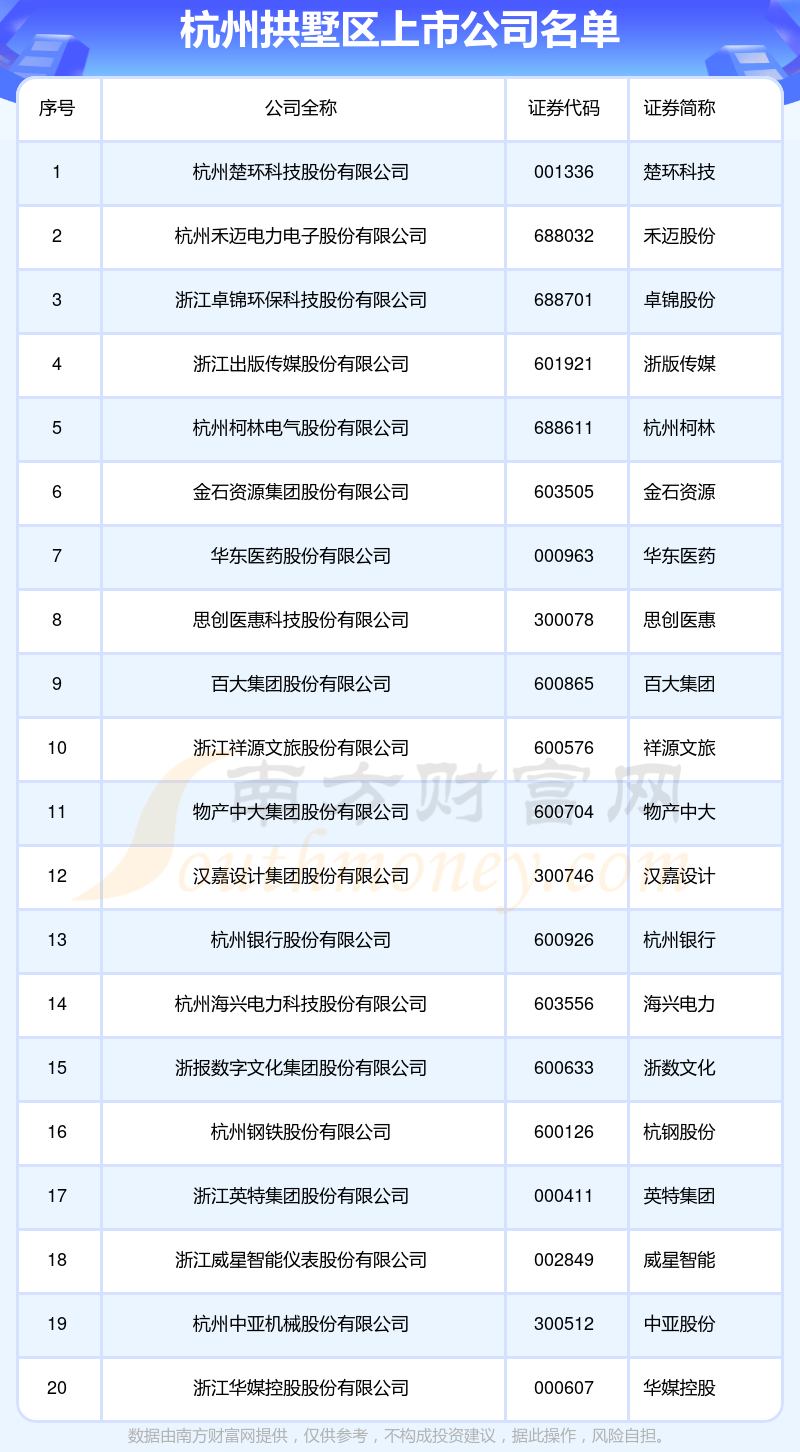 杭州拱墅區(qū)的上市公司都有哪些?南方財富網(wǎng)趨勢選股系統(tǒng)為您整理了歸屬于杭州拱墅區(qū),并且在A股上市的公司。