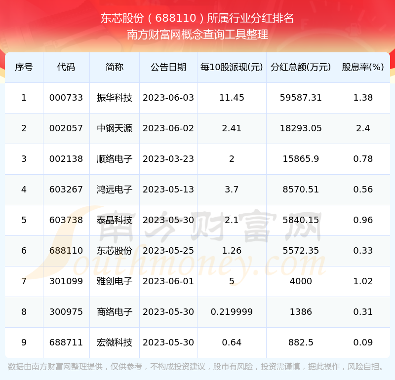 二、東芯股份688110行業(yè)分紅排名
