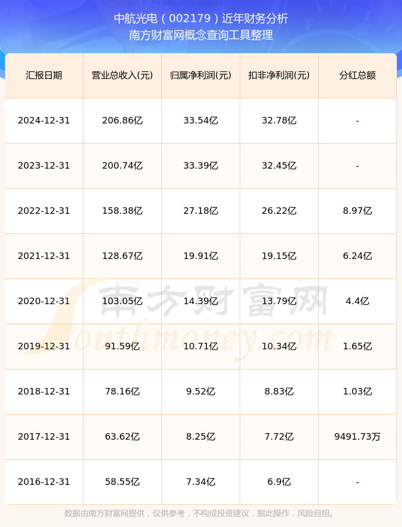 中航光電2024年總營收206.86億,同比增長3.04%;凈利潤33.54億,同比增長0.45%;銷售毛利率36.61%。