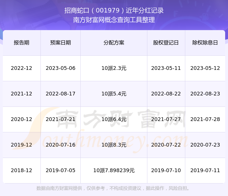 招商蛇口最新一次公布的分紅方案:10派2.3元。