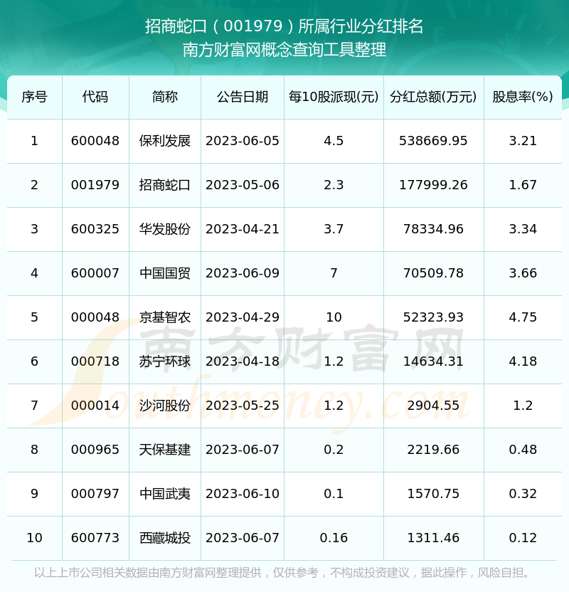 按照南方財(cái)富網(wǎng)趨勢(shì)選股系統(tǒng)統(tǒng)計(jì),招商蛇口所屬行業(yè)為房地產(chǎn)開發(fā)行業(yè),房地產(chǎn)開發(fā)行業(yè)分紅排名情況如下表: