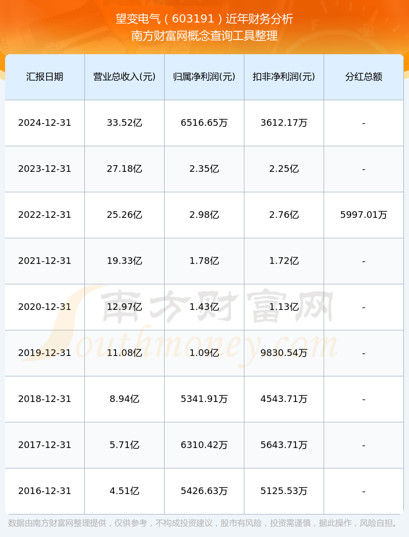 望變電氣2024年總營(yíng)收33.52億,同比增長(zhǎng)23.32%;凈利潤(rùn)6516.65萬,同比增長(zhǎng)-72.22%;銷售毛利率10.97%。