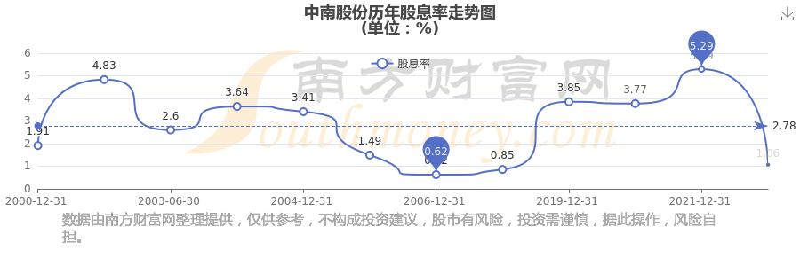 近年中南股份年度股息率走勢(shì)如下圖: