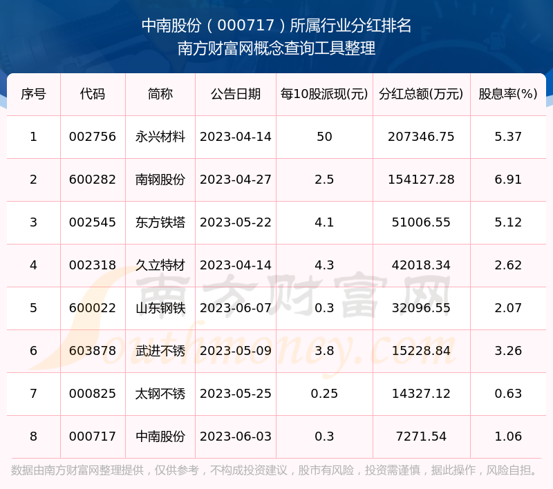 二、中南股份000717行業(yè)分紅排名
