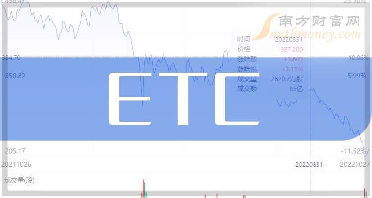 據(jù)南方財富網(wǎng)概念查詢工具數(shù)據(jù)顯示,2025年ETC概念股票的龍頭股有: