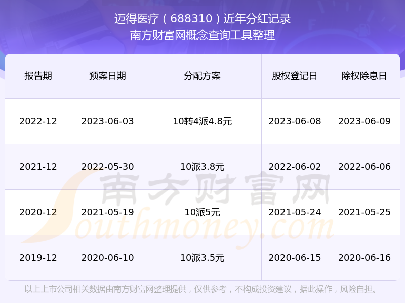 邁得醫(yī)療歷年分紅派息情況如下表所示:
