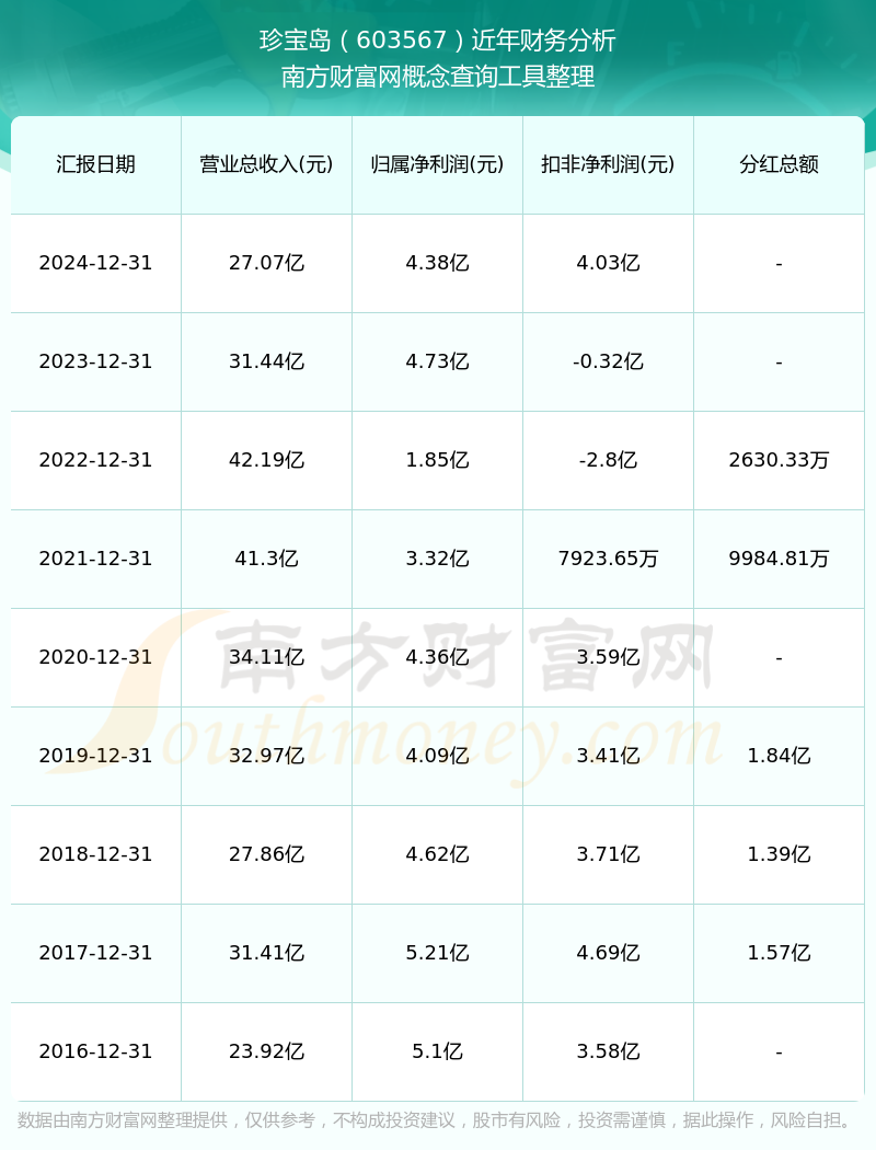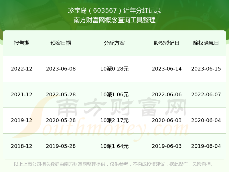 珍寶島歷年分紅派息情況如下表所示: