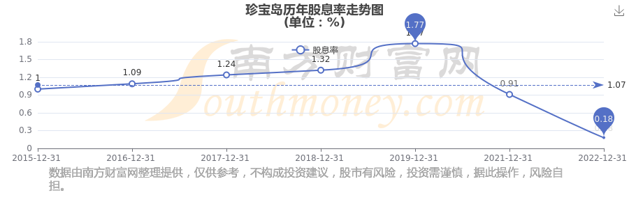 珍寶島歷年股息率走勢如下圖: