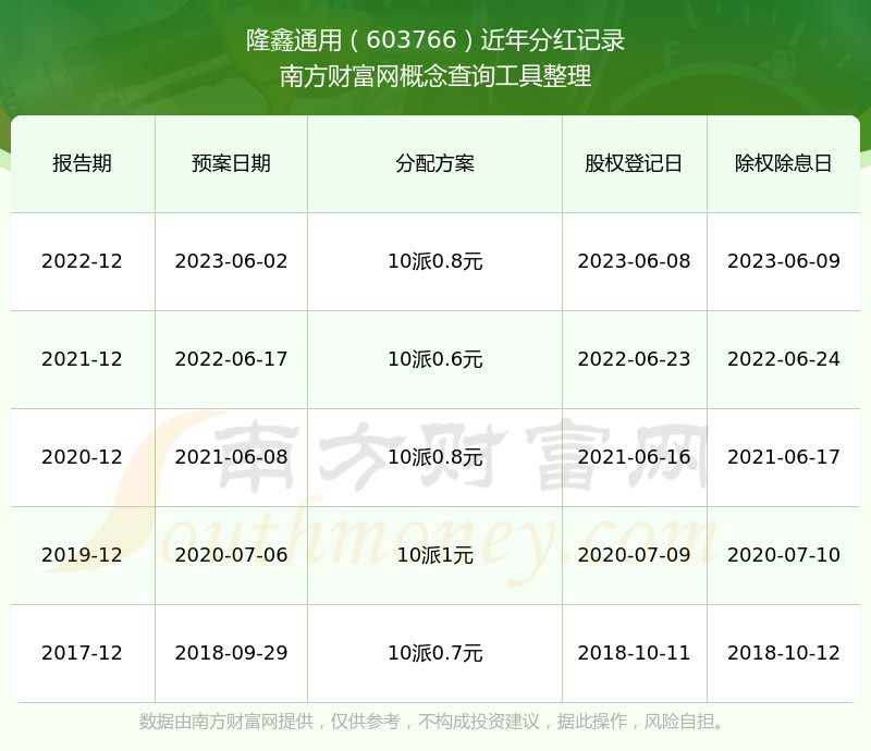 隆鑫通用最新一次公布的分紅方案為10派0.8元。本次權(quán)益分派股權(quán)登記日為2023年6月8日,除權(quán)除息日為2023年6月9日,派息日為2023年6月9日。