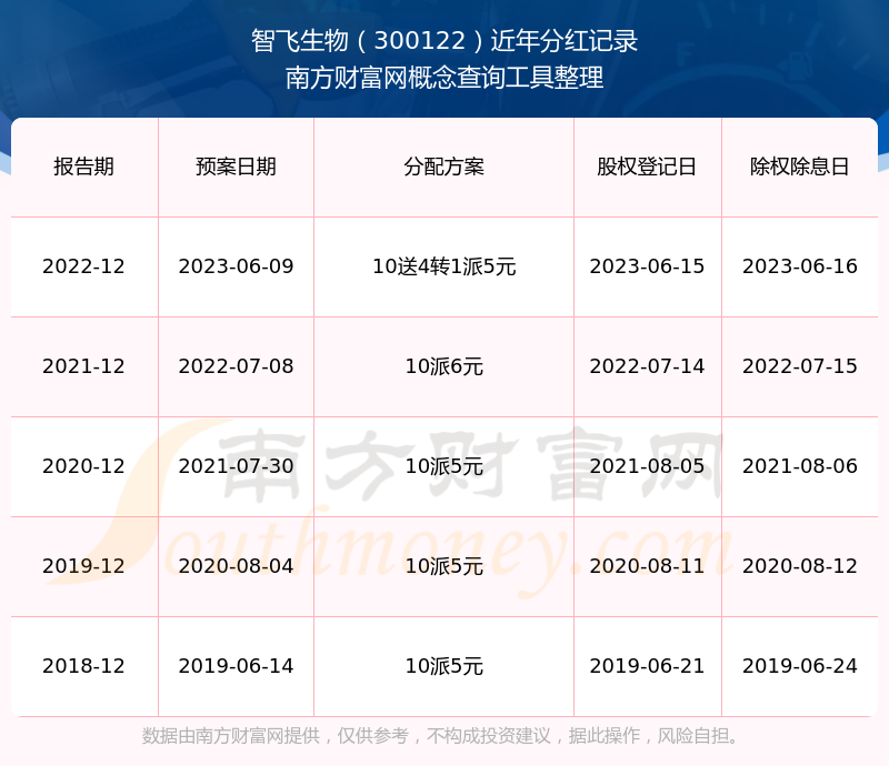 近年智飛生物分紅派息情況如下表所示: