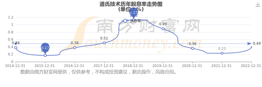 道氏技術(shù)歷年股息率走勢如下圖: