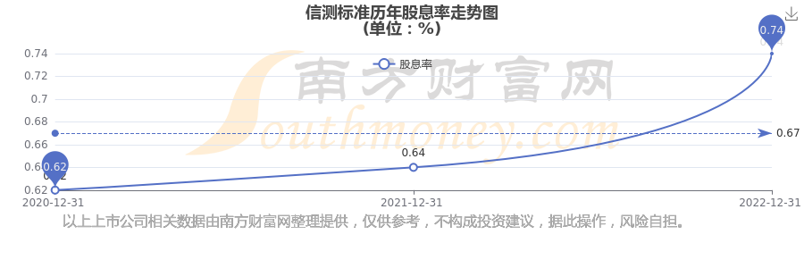 信測標準最新一次公布的分紅方案為10派3元。本次權益分派股權登記日為2023年6月5日,除權除息日為2023年6月6日,派息日為2023年6月6日。