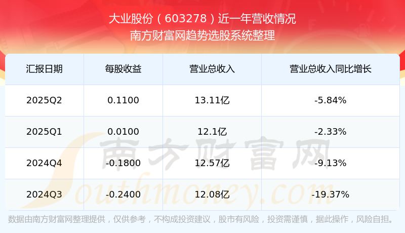一、大業(yè)股份(603278)股票營收情況