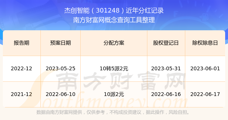 一、杰創(chuàng)智能(301248)股票分紅記錄