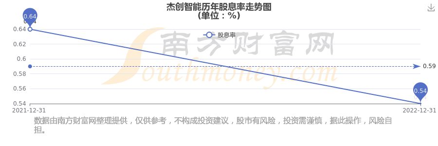 近年杰創(chuàng)智能年度股息率走勢(shì)如下圖: