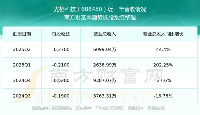 光格科技股票近一年營收情況如下表: