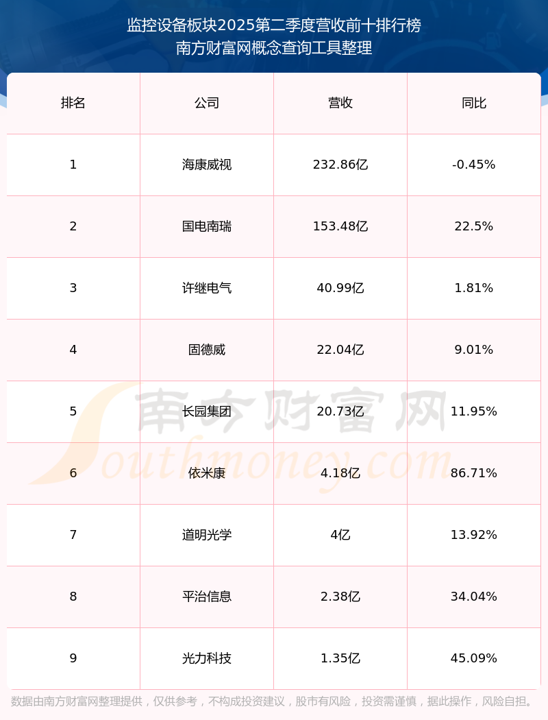 按照南方財富網概念查詢工具統(tǒng)計,該股所屬板塊為監(jiān)控設備板塊,該板塊共有9只股票,光格科技2025第二季度營收在該板塊中排名為第9名,該板塊2025第二季度營收排名前十的股票如下表: