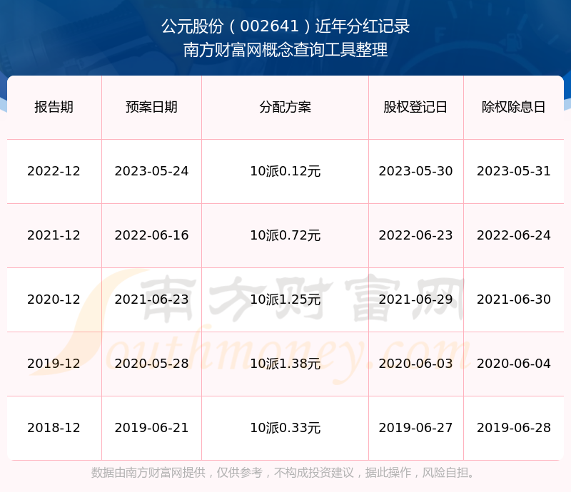 公元股份最新一次公布的分紅方案:10派0.12元。