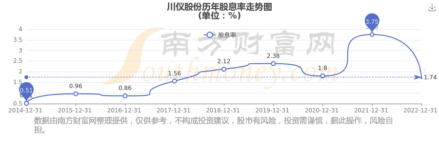 近年川儀股份年度股息率走勢(shì)如下圖: