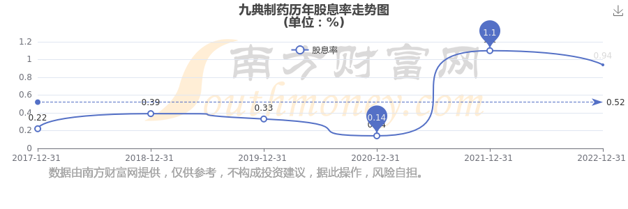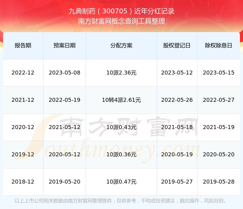 九典制藥最新一次公布的分紅方案:10派2.36元。