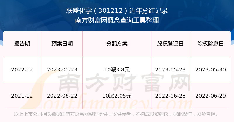 聯(lián)盛化學(xué)最新一次公布的分紅方案為10派3.8元。本次權(quán)益分派股權(quán)登記日為2023年5月29日,除權(quán)除息日為2023年5月30日,派息日為2023年5月30日。
