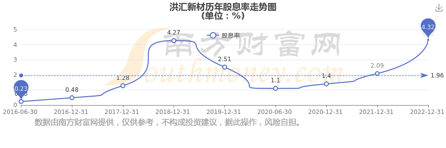 洪匯新材歷年股息率走勢(shì)如下圖: