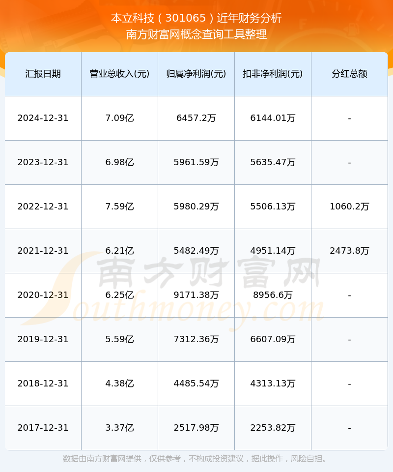 公司2024年實現(xiàn)營業(yè)收入7.09億元,同比增長1.57%;凈利潤6457.2萬元,同比增長8.31%;毛利率17.01%。