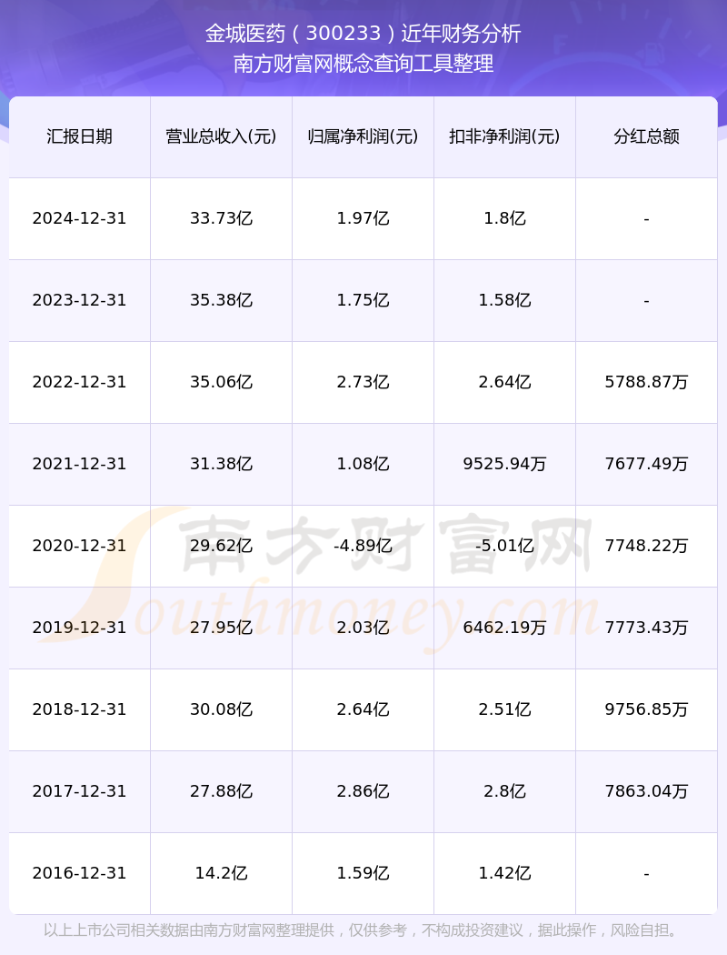 近年金城醫(yī)藥分紅派息情況如下表所示:
