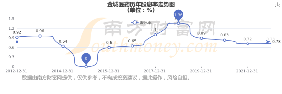 金城醫(yī)藥歷年股息率走勢如下圖:
