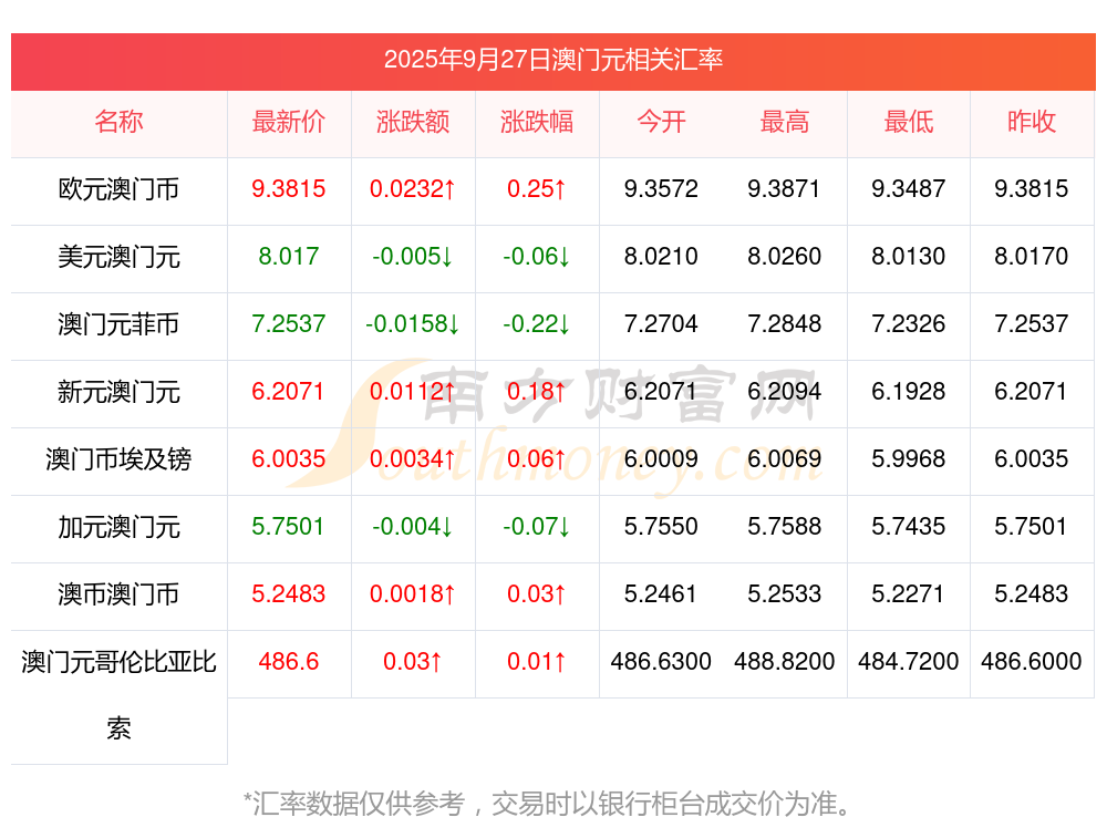 2025年9月27日澳門元相關(guān)匯率查詢