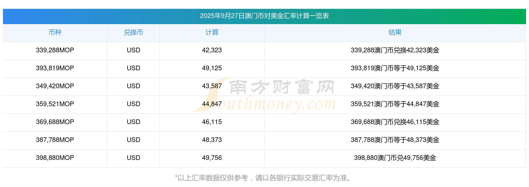 2025年9月27日匯率行情:51澳門幣對(duì)美金匯率多少