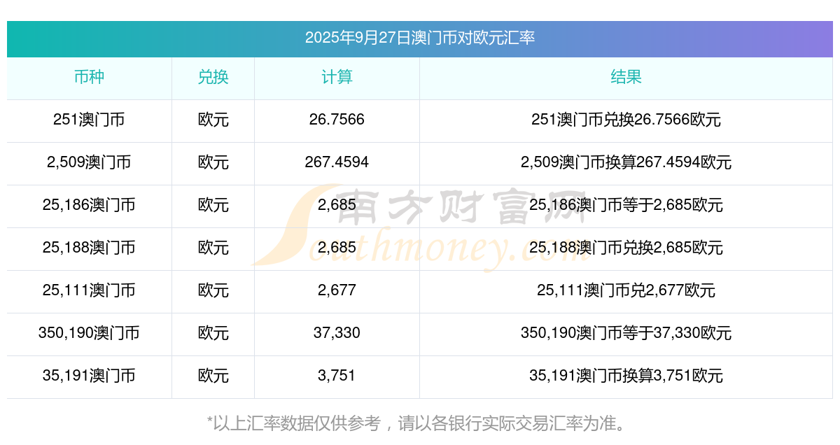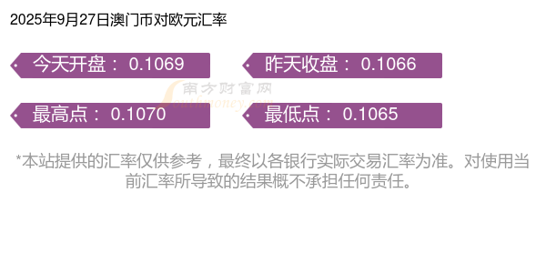 南方財富網(wǎng)為您提供澳門幣對歐元匯率最新價格詳情。