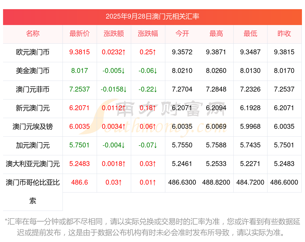 2025年9月28日澳門元相關(guān)匯率查詢