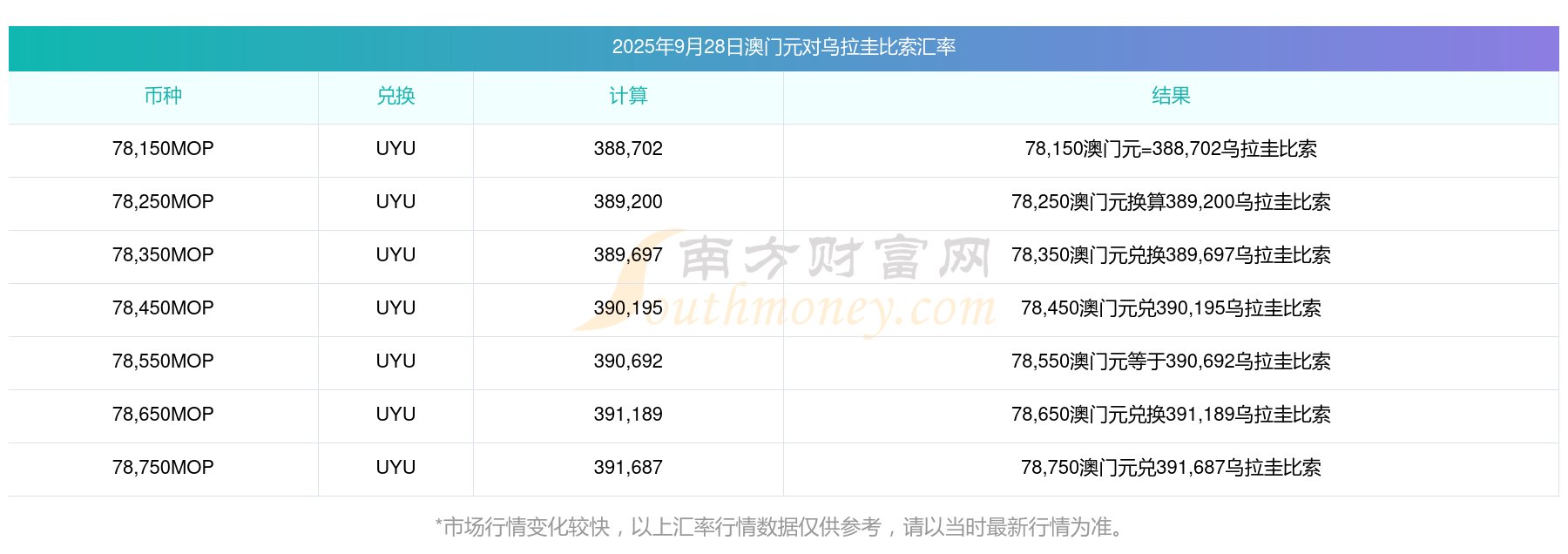 最新2025年9月28日24澳門元兌烏拉圭比索匯價(jià)是多少?