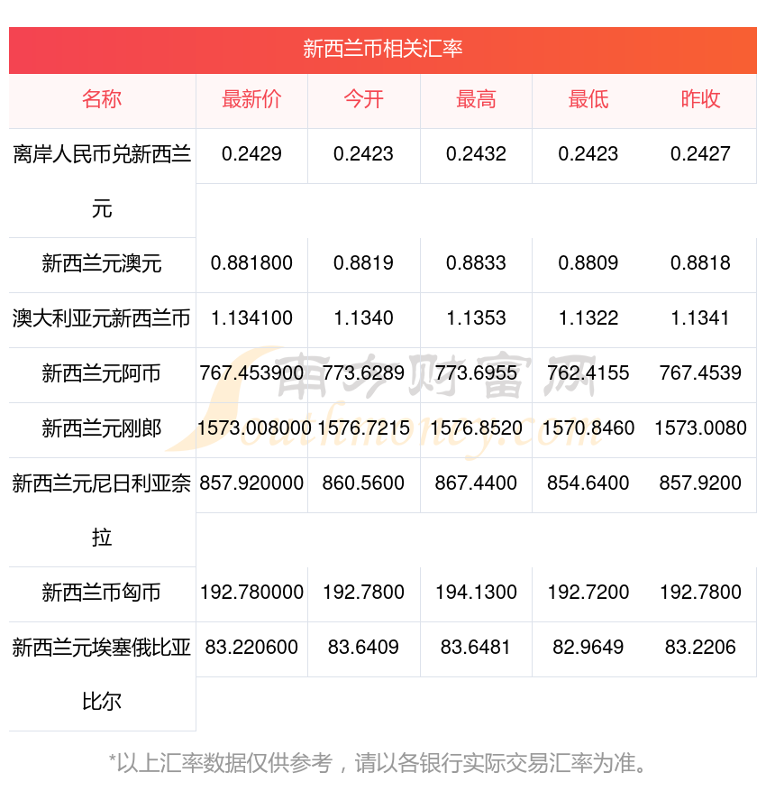 2025年9月28日新西蘭幣相關(guān)匯率查詢