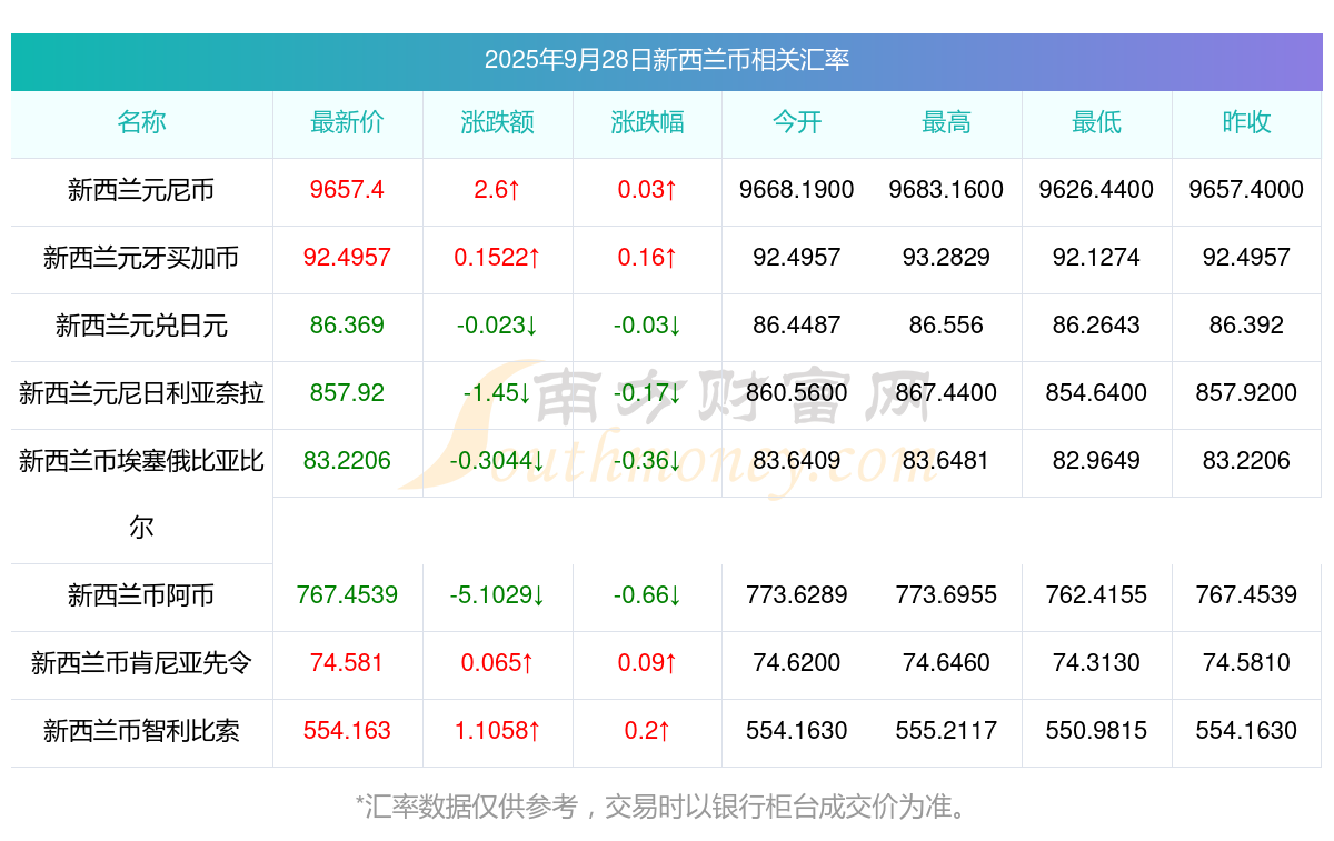 - 新西蘭幣對(duì)南非蘭特匯率價(jià)格查詢(2025年9月27日)