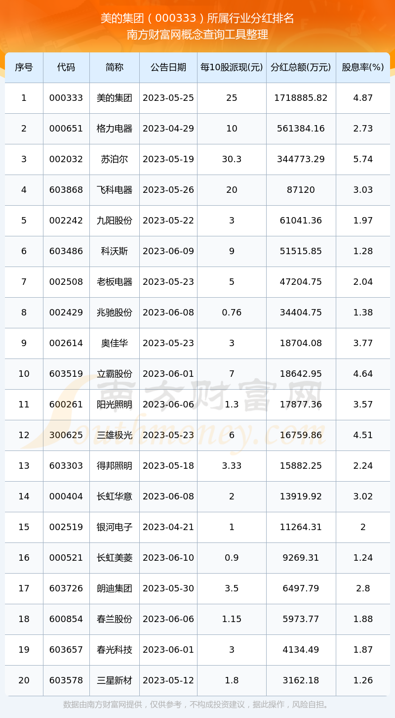 二、美的集團(tuán)000333行業(yè)分紅排名