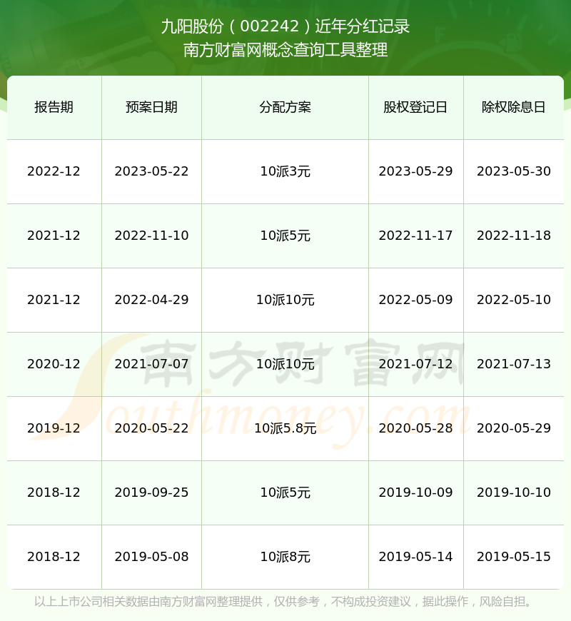 二、九陽股份002242行業(yè)分紅排名
