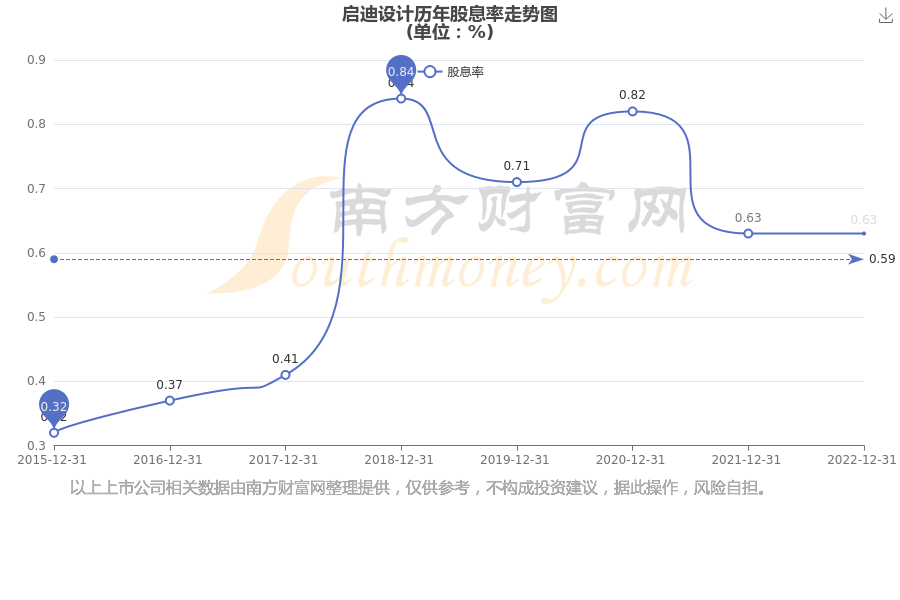 近年啟迪設(shè)計(jì)年度股息率走勢(shì)如下圖: