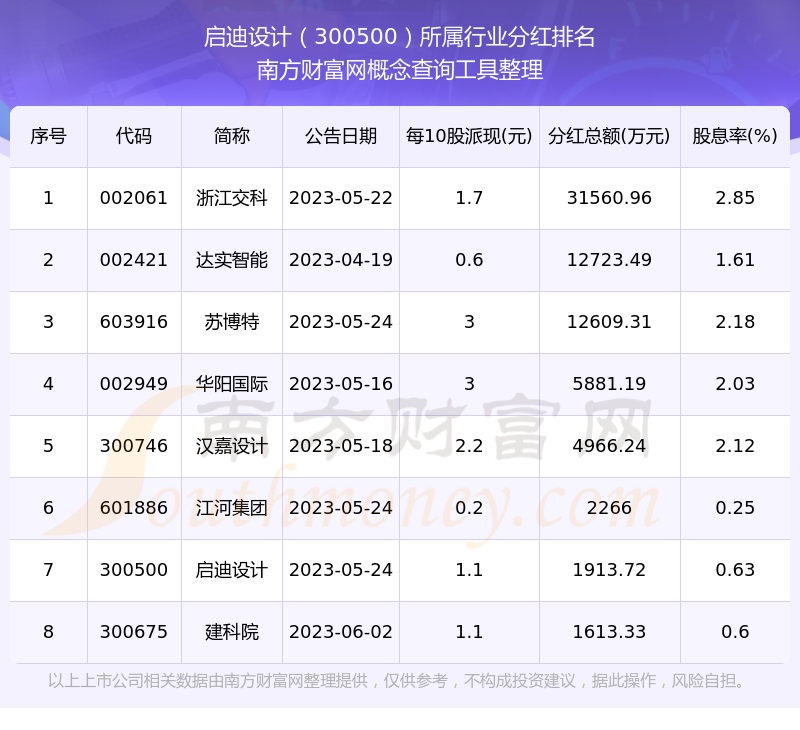 二、啟迪設(shè)計(jì)300500行業(yè)分紅排名