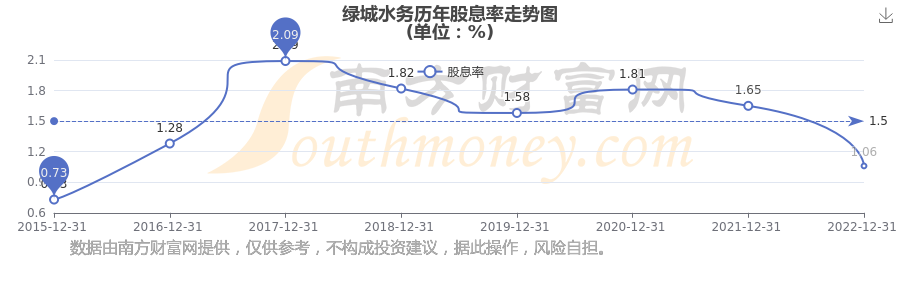 近年綠城水務(wù)年度股息率走勢如下圖: