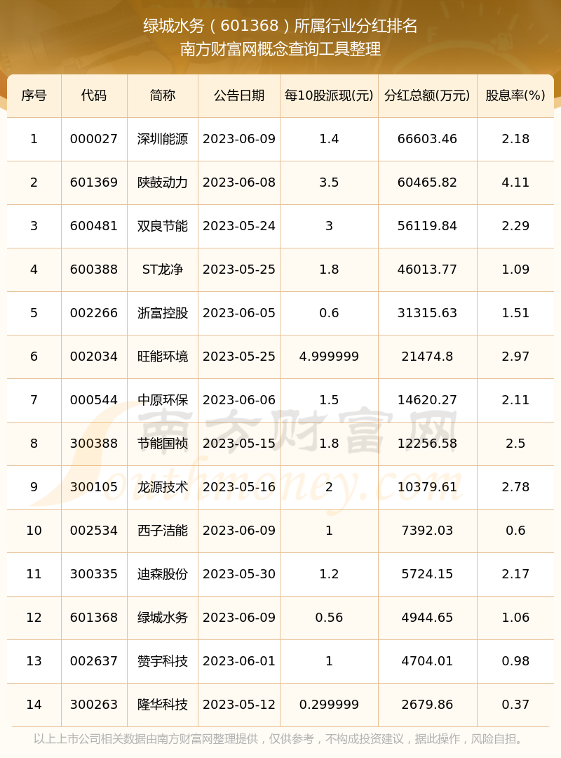 二、綠城水務(wù)601368行業(yè)分紅排名