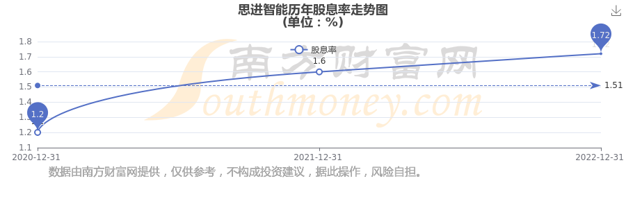 近年思進(jìn)智能年度股息率走勢如下圖: