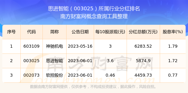 二、思進(jìn)智能003025行業(yè)分紅排名