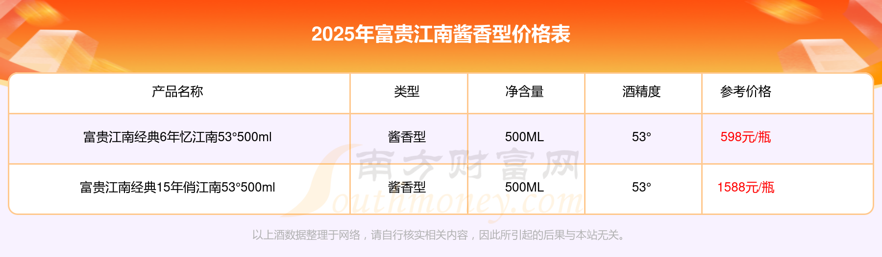 富貴江南醬香型酒價(jià)格表查詢_富貴江南醬香型酒2025價(jià)格一覽表