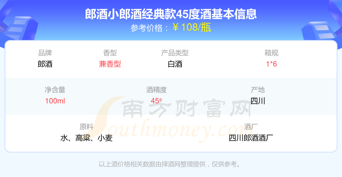 郎酒小郎酒經典款45度酒價格是多少(多少錢一瓶)