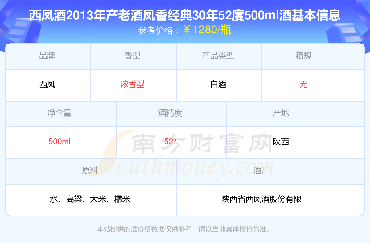 西鳳酒2013年產(chǎn)老酒鳳香經(jīng)典30年52度500ml酒價(jià)格2025_一瓶多少錢(qián)?