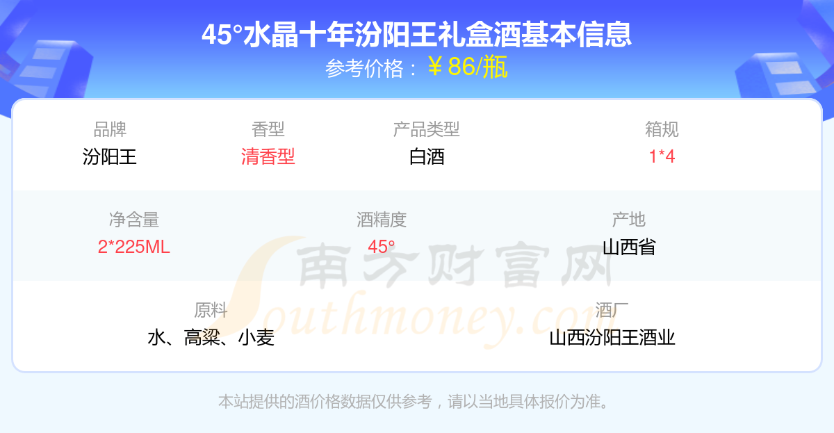 45°水晶十年汾陽(yáng)王禮盒基本信息