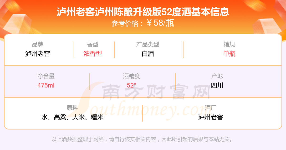 瀘州老窖瀘州陳釀升級(jí)版52度基本信息