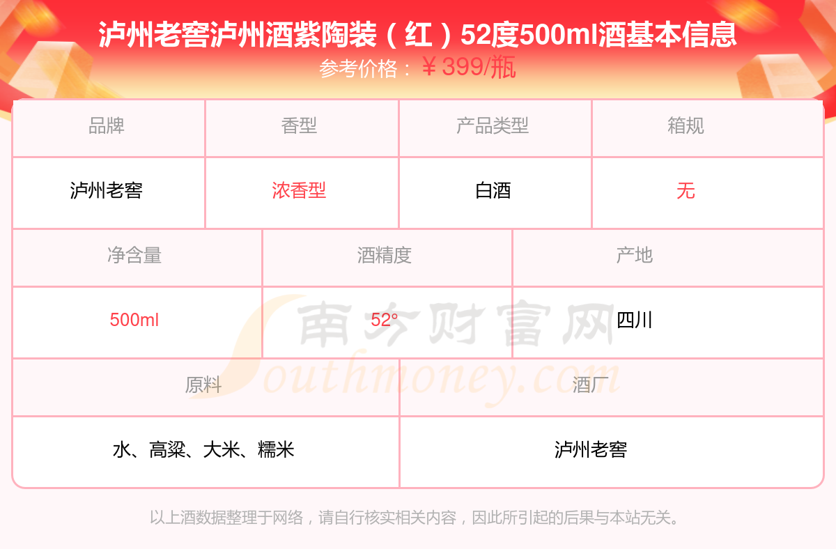 瀘州老窖瀘州酒紫陶裝(紅)52度500ml基本信息
